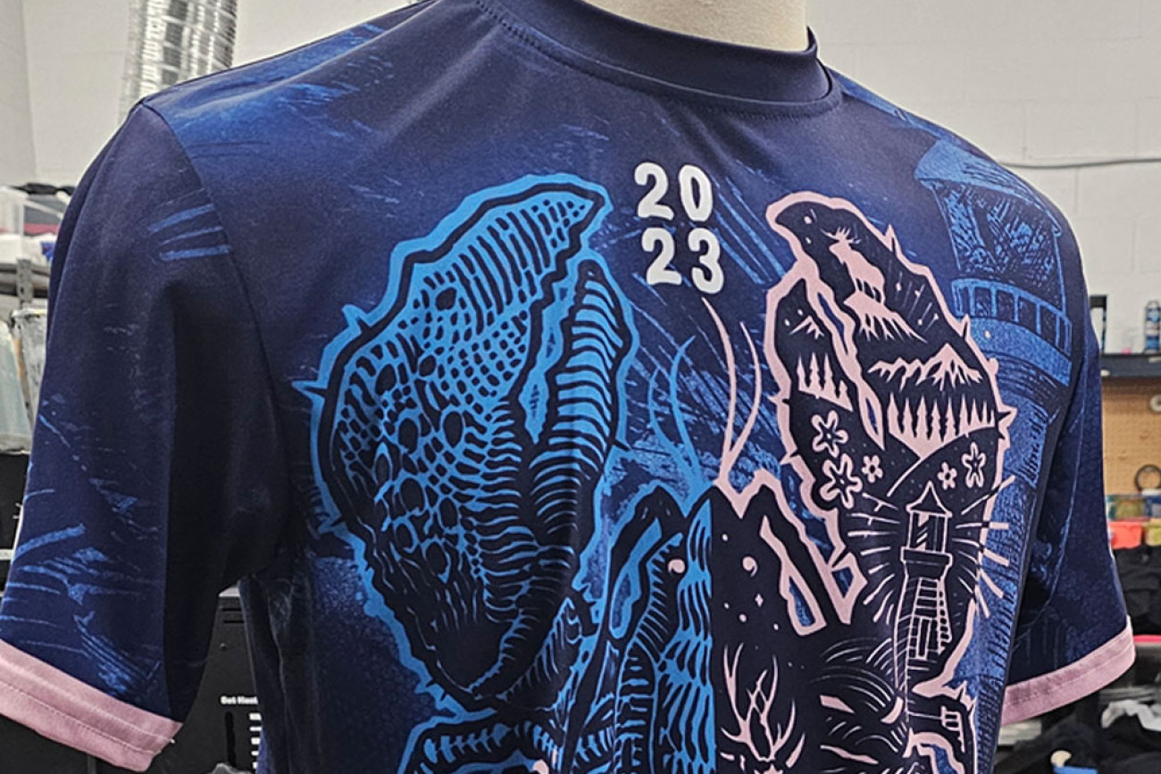 Sublimation is a process that allows for all over prints in full-colour. Designs printed on a sheet of white polyester and then cut&sewn.This process is a unique one in that it uses heat to transfer dye into the fabric leaving no fabric or materials, resulting in designs that are durable, high-quality, and capable of producing intricate, full-color artwork. This project involves crafting designs specifically optimized for sublimation to ensure they achieve the best possible results on various substrates, including polyester fabrics, mugs, phone cases, and more.